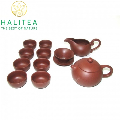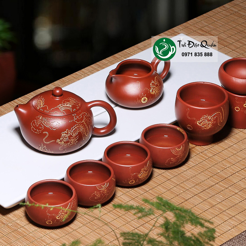 Bộ ấm trà tử sa thường gồm 01 ấm, 06 chén, kèm theo 01 đĩa ấm và 06 đĩa chén, với thiết kế tinh xảo và sang trọng. Các chi tiết được làm bằng tay, mang đến nét riêng biệt không thể nhầm lẫn. Những bộ ấm trà này thường được sử dụng trong các buổi trà đạo, trở thành điểm nhấn cho không gian phòng khách hay bàn uống trà.
