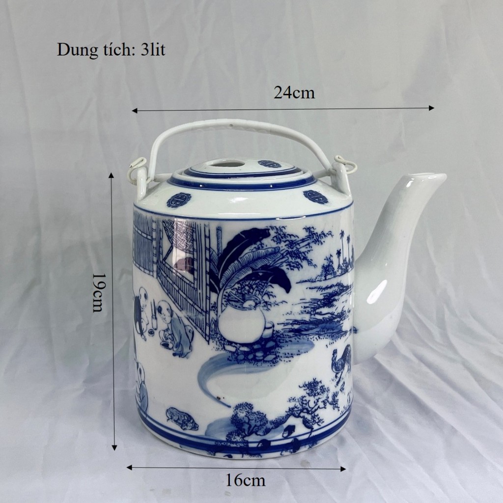 Ấm tích pha trà xanh gốm sứ Bát Tràng là một sản phẩm hoàn hảo cho những tín đồ mê trà. Với dung tích 2 lít, ấm tích này đáp ứng nhu cầu pha chế trà xanh cho cả gia đình hoặc cho những buổi tiếp khách. Chất liệu gốm sứ trắng sáng với họa tiết xanh lam tạo nên vẻ đẹp thanh lịch và sang trọng.
