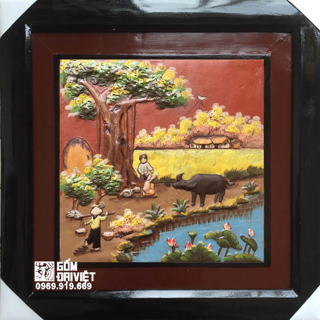 Trong số các mẫu tranh, tranh tứ quý và tranh phong cảnh đồng quê thường được lựa chọn nhất. Những bức tranh này không chỉ mang nét đẹp bình dị mà còn có ý nghĩa phong thủy, thích hợp để treo ở phòng khách hoặc phòng riêng theo hướng Nam và Tây Bắc. Việc treo tranh gốm phù hợp sẽ tạo ra không gian ấm cúng và gần gũi cho gia đình.