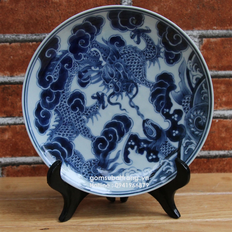 Chén cổ hình rồng đẹp không chỉ là một sản phẩm gốm sứ mà còn là tác phẩm nghệ thuật tinh xảo. Bộ kỷ ba chén vẽ rồng với chất liệu gốm Bát Tràng, được chế tác tỉ mỉ, bao gồm ba chén và một khay, mang đến vẻ đẹp sắc sảo với họa tiết xanh lam trong nền trắng. Viền chén được thiết kế lượn sóng mềm mại, tạo nên sự hài hòa giữa nghệ thuật và thẩm mỹ.