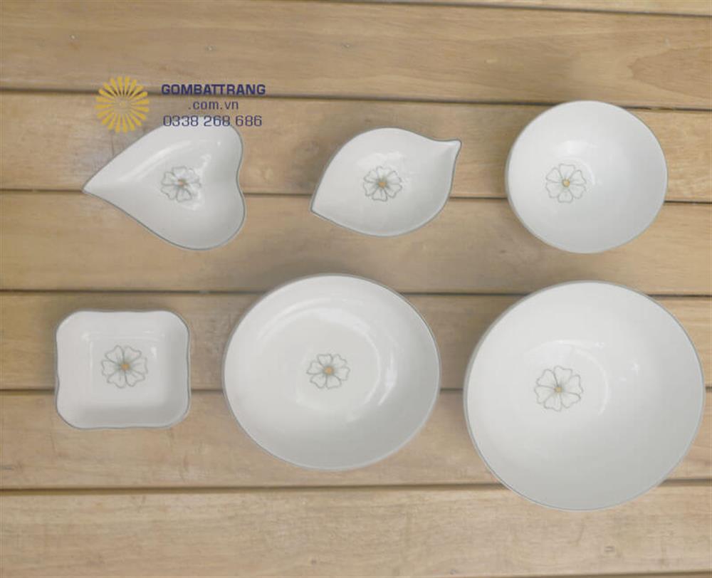 Trong bộ bát đĩa ăn cơm, bạn sẽ tìm thấy bát cơm, bát tô sứ, đĩa tròn và đĩa vuông, tất cả đều được làm từ gốm sứ Bát Tràng nổi tiếng. Đặc biệt, với những họa tiết tinh tế và phong cách thiết kế hiện đại, bộ bát đĩa này không chỉ dùng để ăn mà còn trở thành món quà ý nghĩa cho người thân và bạn bè.