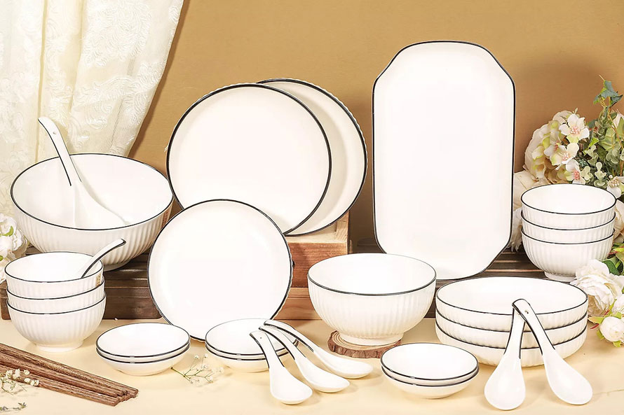Bộ đĩa sứ trắng tinh tế sang trọng cho bữa cơm gia đình ấm cúng