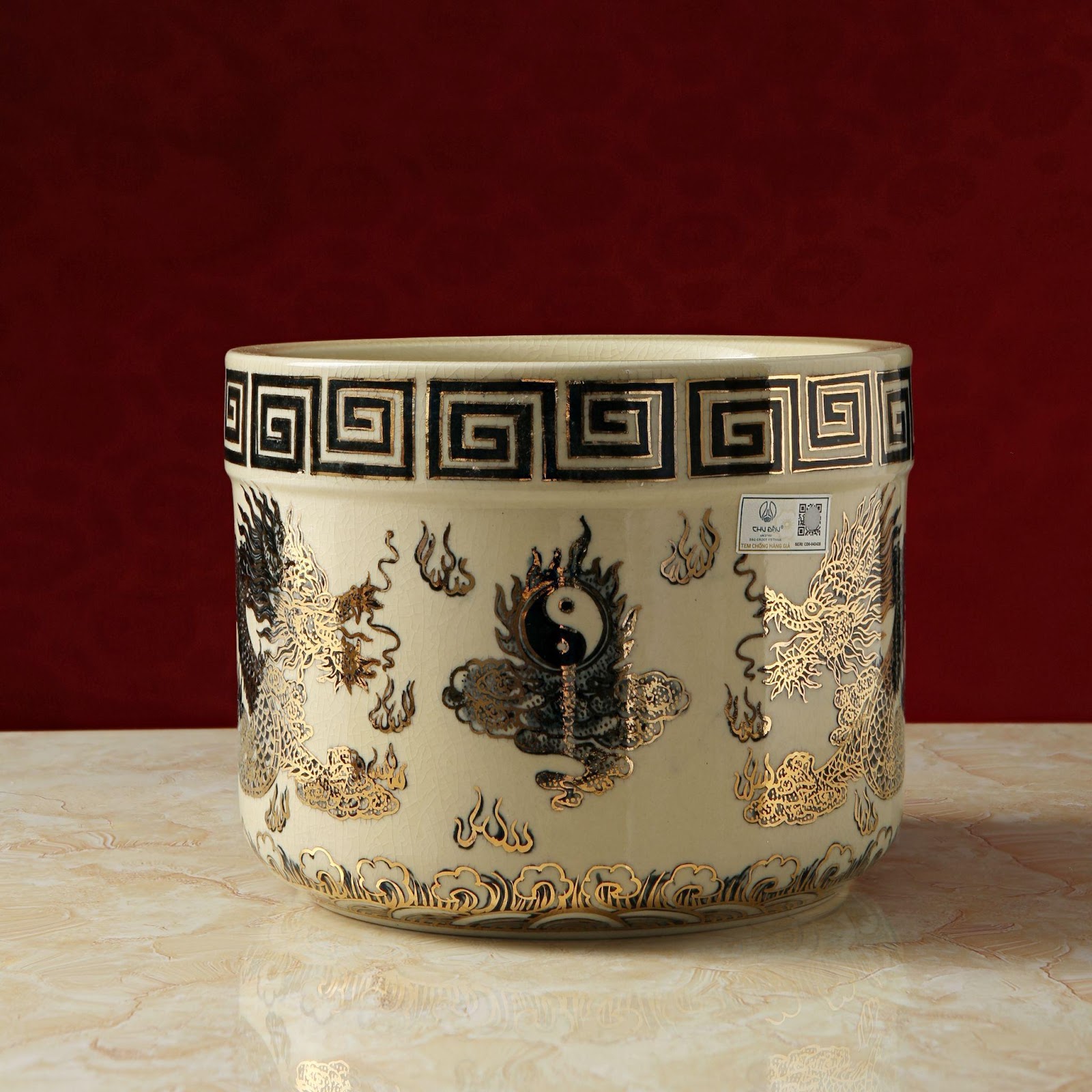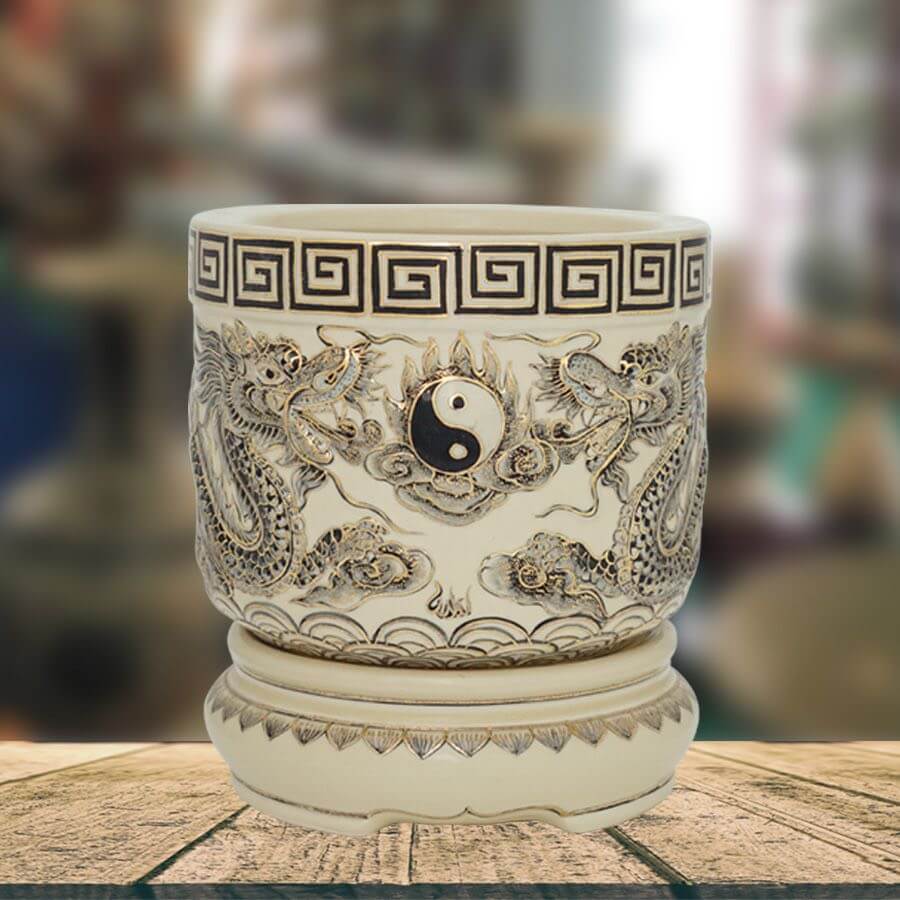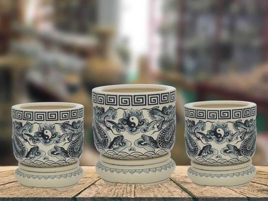 Đặc biệt, bát hương gốm Chu Đậu có chất liệu men truyền thống với họa tiết Rồng rất tinh tế, thể hiện phong cách trang nghiêm mà vẫn gần gũi. Nếu bạn là người mệnh Thủy, hãy ưu tiên chọn bát hương màu đen, trắng hoặc xanh dương để tăng cường thêm may mắn cho không gian thờ cúng của gia đình.