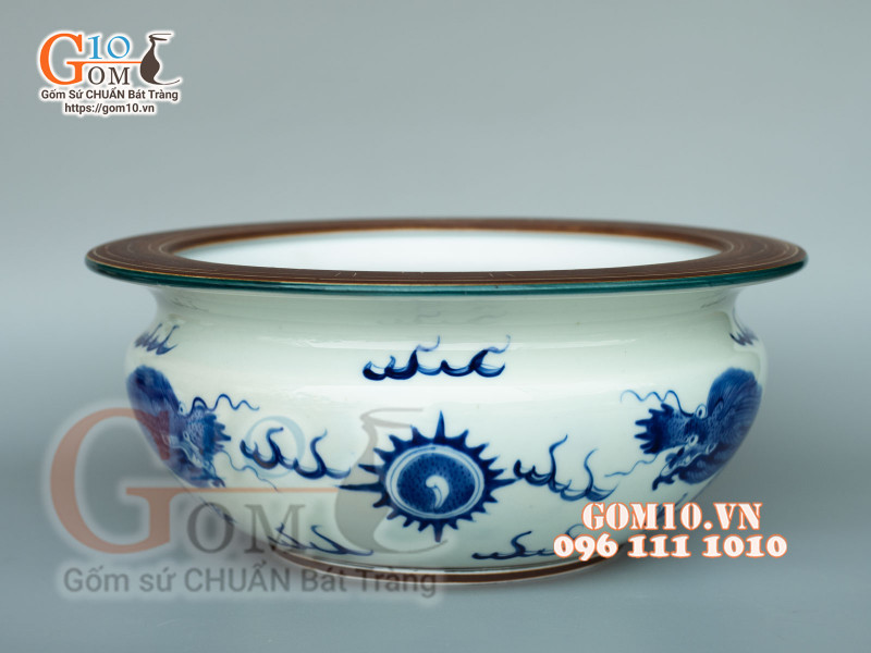 Sản phẩm được làm từ loại đất sét trắng cao cấp, tạo nên xương gốm cứng chắc và không dễ bị nứt vỡ. Đặc biệt, hoa văn trên bát hương đều được vẽ tay, thể hiện sự tâm huyết của người nghệ nhân Bát Tràng. Mỗi chi tiết đều được nghiên cứu tỉ mỉ để đảm bảo tính thẩm mỹ và phong thuỷ.