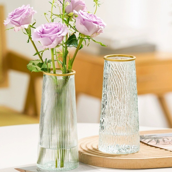 Bình cắm hoa có đế vàng hay mẫu bình tròn hồng đều mang lại cảm giác sang trọng, tạo điểm nhấn cho không gian. Với thiết kế thân hình trụ đứng, chúng rất thích hợp để cắm những loại hoa có thân cao, mang lại sự chắc chắn và cứng cáp. Đặc biệt, lọ thủy tinh có nắp cũng được ưa chuộng để trưng bày hoa khô, giúp không gian trang trí trở nên độc đáo hơn và dễ chăm sóc hơn.