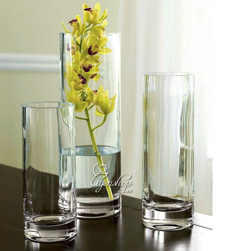 Đối với bình thủy tinh hình trụ, đây là lựa chọn hoàn hảo cho những bông hoa có cành cao như hoa ly, lay ơn hay hoa loa kèn. Với thiết kế trong suốt, loại bình này không chỉ giúp tôn lên vẻ đẹp của hoa mà còn mang đến sự sang trọng cho không gian. Bạn nên chọn bình có chiều cao phù hợp với chiều dài của hoa để tạo sự cân đối.