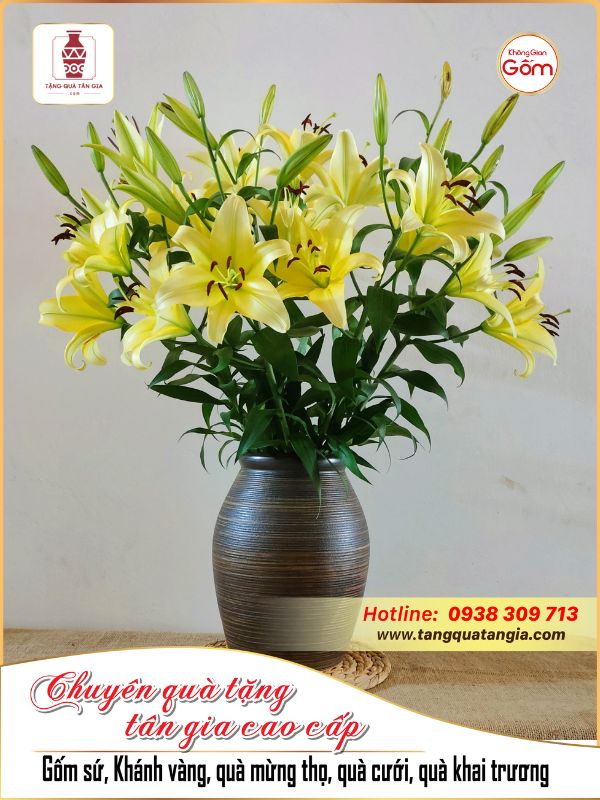 Bình gốm cắm hoa ly không chỉ là vật dụng trưng bày quen thuộc trong mỗi gia đình mà còn là điểm nhấn tạo nên không gian sống sang trọng và tinh tế. Với vẻ đẹp thanh khiết, hoa ly thường được lựa chọn để tô điểm cho phòng khách, bàn ăn hoặc các dịp lễ tết. Khi kết hợp cùng những chiếc bình gốm nghệ thuật, hoa ly càng thêm nổi bật, tôn lên nét đẹp tự nhiên và trang nhã. Để chọn được mẫu bình gốm cắm hoa ly phù hợp và ấn tượng, hãy cùng khám phá các mẫu bình, địa chỉ mua và những lưu ý khi trang trí trong bài viết dưới đây.
