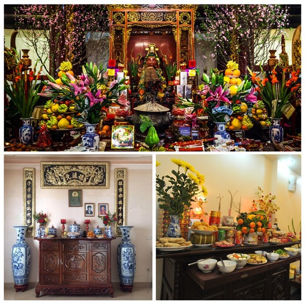 Bình hoa bàn thờ gia tiên trang nghiêm ngày lễ