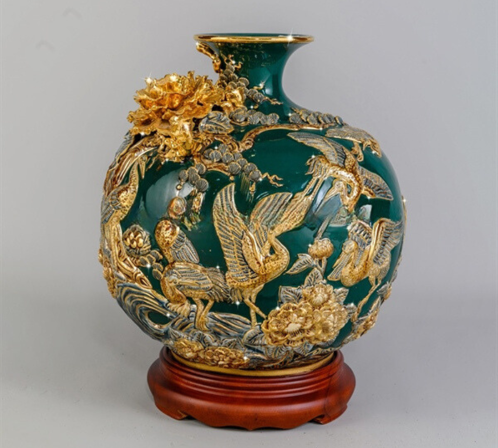 Bình hút tài lộc gốm sứ vẽ vàng 24k không chỉ là một vật phẩm phong thủy mà còn mang lại may mắn trong kinh doanh cho gia chủ. Với thiết kế tinh tế và ấn tượng, sản phẩm này trở thành lựa chọn hàng đầu của nhiều người. Tại Xưởng Gốm Việt, giá sỉ bình hút tài lộc Bát Tràng rất đa dạng, từ 250.000 đồng cho sản phẩm cơ bản đến hàng triệu đồng cho những mẫu cao cấp.