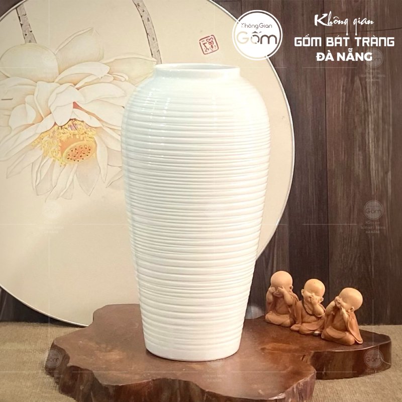 Màu trắng thường được liên kết với sự thuần khiết và ngây thơ, vì vậy bình hoa này là lựa chọn tuyệt vời cho những dịp tưởng nhớ và chia buồn. Những chiếc bình hoa Bát Tràng này không chỉ là những vật dụng thông thường, mà còn là biểu tượng cho sự hòa hợp giữa con người và thiên nhiên, mang đến tài lộc và vận may.