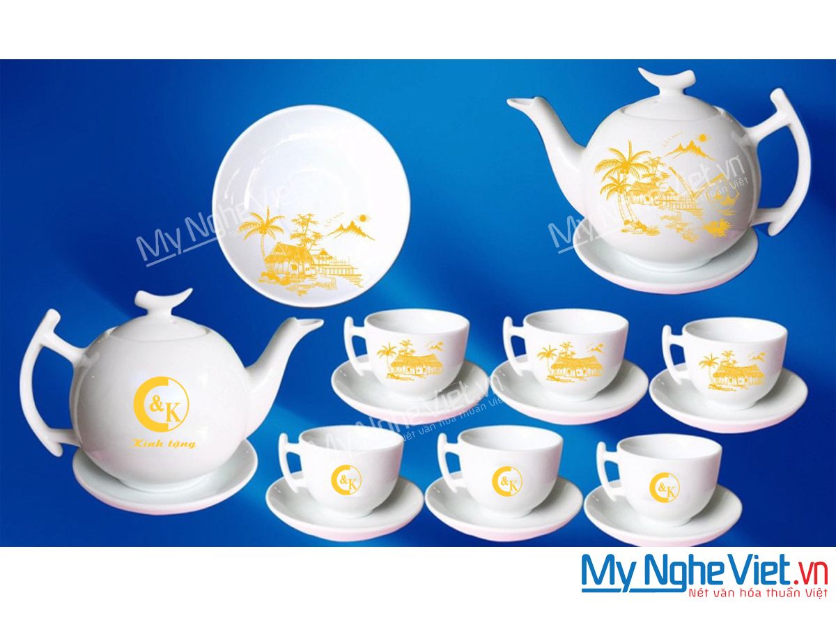 Địa Chỉ Làm Bộ Ấm Chén Bát Tràng In Logo