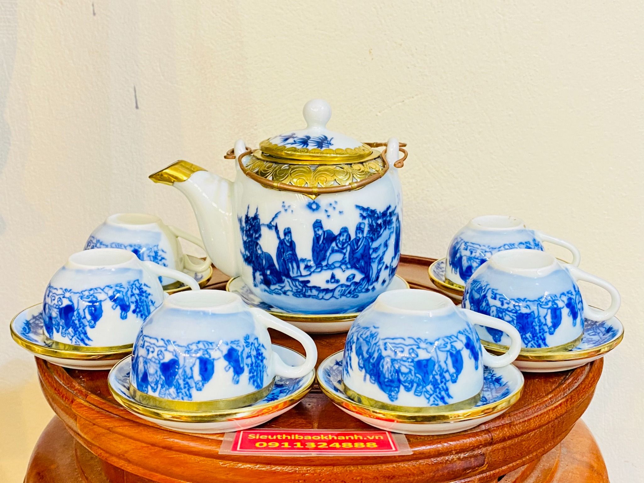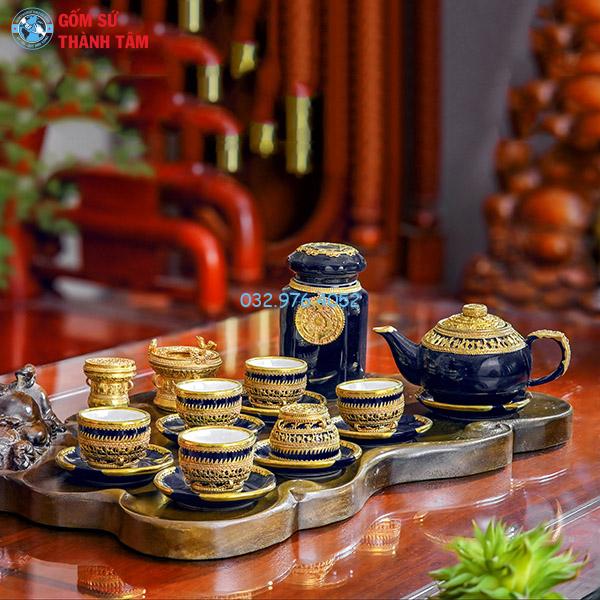 Ấm chén men lam bọc đồng là một món đồ gốm sứ cao cấp, mang đậm giá trị nghệ thuật và văn hóa Việt Nam. Với màu xanh coban đặc trưng cùng những họa tiết tinh xảo, mỗi bộ ấm chén đều tạo nên sức hút khó cưỡng. Phần gốm được phủ lớp đồng, vừa đem lại sự sang trọng, vừa tạo cảm giác độc đáo cho sản phẩm.