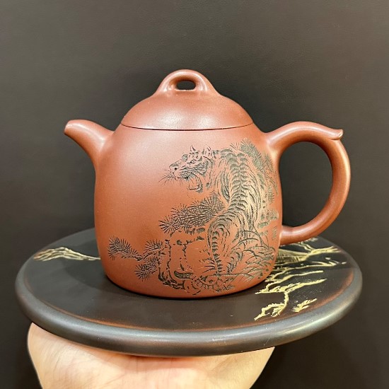Tiếp theo, bạn cần chú ý đến tỷ lệ các phần của ấm. Một chiếc ấm tử sa chuẩn thường có tỷ lệ hài hòa, từng đường nét được chăm chút kỹ lưỡng. Bên cạnh đó, dấu triện hoặc chữ ký của nghệ nhân thường được khắc ở đáy ấm, dưới nắp, hoặc bên trong quai. Điều này không chỉ xác nhận nguồn gốc mà còn là dấu hiệu của sự tỉ mỉ trong chế tác.