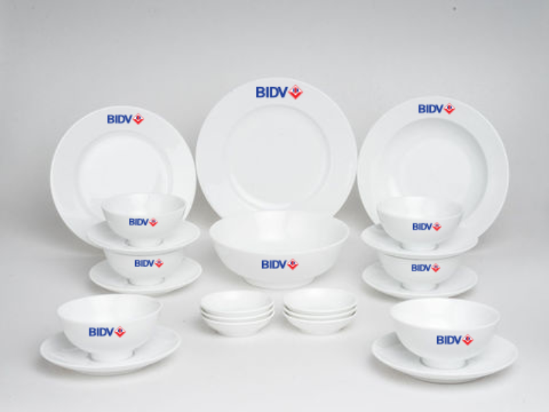 Bộ bàn ăn in logo là một sản phẩm rất đặc biệt, không chỉ đơn thuần là những vật dụng như chén, dĩa, ly, tô, muỗng, đũa hay khay. Những bộ bàn ăn này được thiết kế đồng bộ và tinh tế, mang lại sự sang trọng cho bữa ăn gia đình hoặc các sự kiện doanh nghiệp. Việc in logo lên sản phẩm giúp khẳng định thương hiệu, tạo dựng ấn tượng mạnh mẽ cho khách hàng.