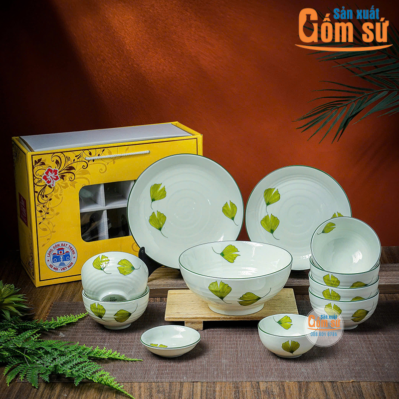 Bộ sản phẩm gồm 9 món, bao gồm 6 chén cơm, 1 tô nông lớn và 2 đĩa tròn, đáp ứng tốt nhu cầu sử dụng hàng ngày. Đặc biệt, dịch vụ in logo miễn phí sẽ giúp bạn tạo dấu ấn riêng cho thương hiệu của mình. Không chỉ là thực phẩm, đây còn là nghệ thuật, khi bộ bàn ăn được chăm chút đến từng chi tiết, từ họa tiết men bóng đến men mờ.