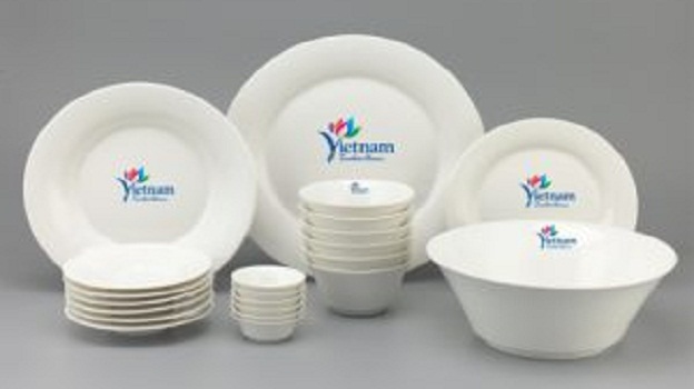 Bộ bàn ăn thiết kế riêng in logo doanh nghiệp