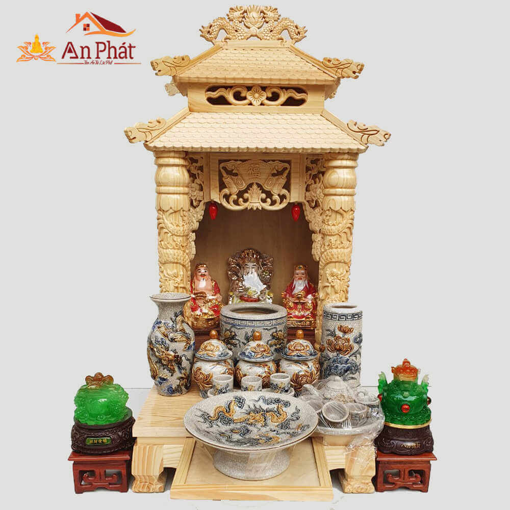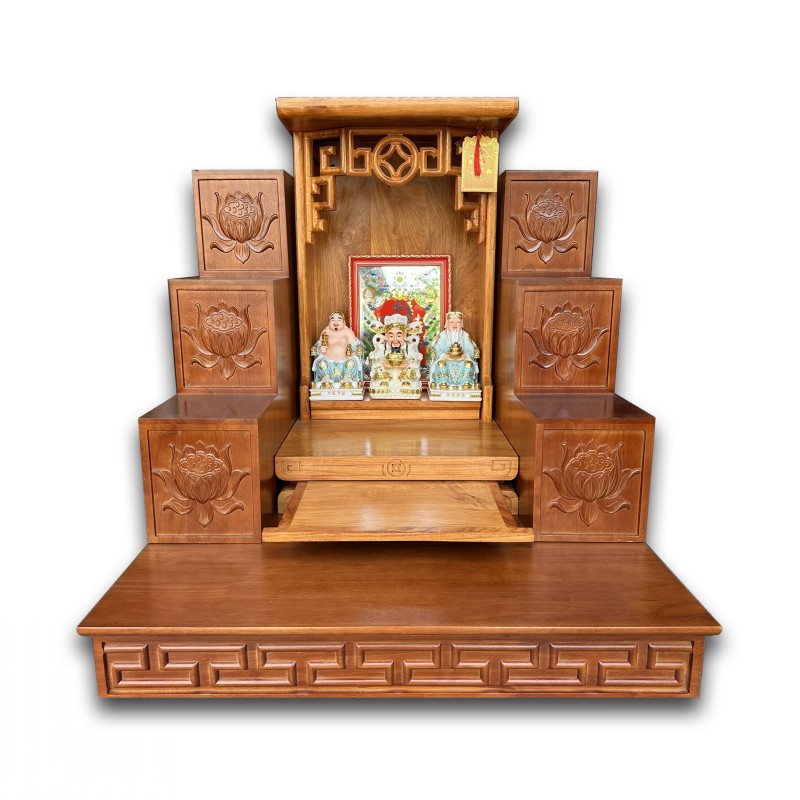 Những bộ bàn thờ được thiết kế tỉ mỉ, có kích thước chuẩn lỗ ban sẽ giúp gia đình bạn tránh xa những điềm xấu, tạo ra một môi trường tích cực cho việc cầu tài. Các vật phẩm kèm theo như tượng Thần Tài, Ông Địa cùng các hũ gạo, hũ muối… đều được chọn lựa kỹ lưỡng để phù hợp với phong thủy từng gia đình hoặc cơ sở kinh doanh.