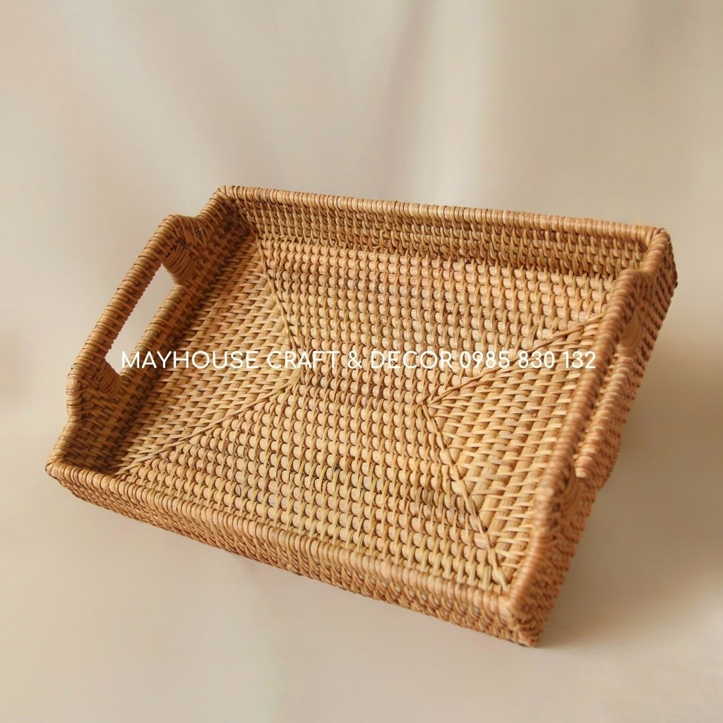 Khay được thiết kế với tay cầm tiện lợi, cho phép bạn dễ dàng di chuyển hay bày biện đồ ăn, bánh kẹo, hoặc các vật dụng văn phòng như bút hay remote. Điều đặc biệt của khay mây tre chính là khả năng chống mốc, giúp bảo quản thực phẩm luôn tươi ngon, đồng thời thích hợp cho việc decor không gian sống hay tổ chức các buổi tiệc nhỏ.