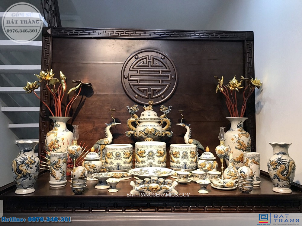 Bộ bát hương Bát Tràng cao cấp tinh xảo sang trọng
