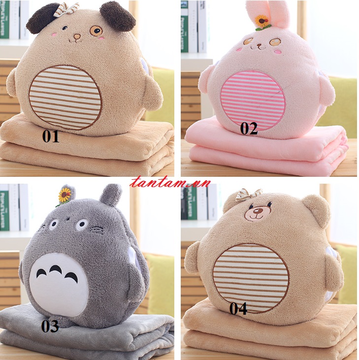 Điểm nổi bật là sự đa năng của bộ chăn gối này, bạn có thể sử dụng nó như gối ôm, gối đầu hoặc thậm chí là lót cổ khi ngồi trên xe. Các kiểu dáng từ hình cá, hình heo đến hình mèo đều rất sinh động và gần gũi, khiến cho mỗi lần nhìn thấy đều mang lại cảm giác vui tươi.