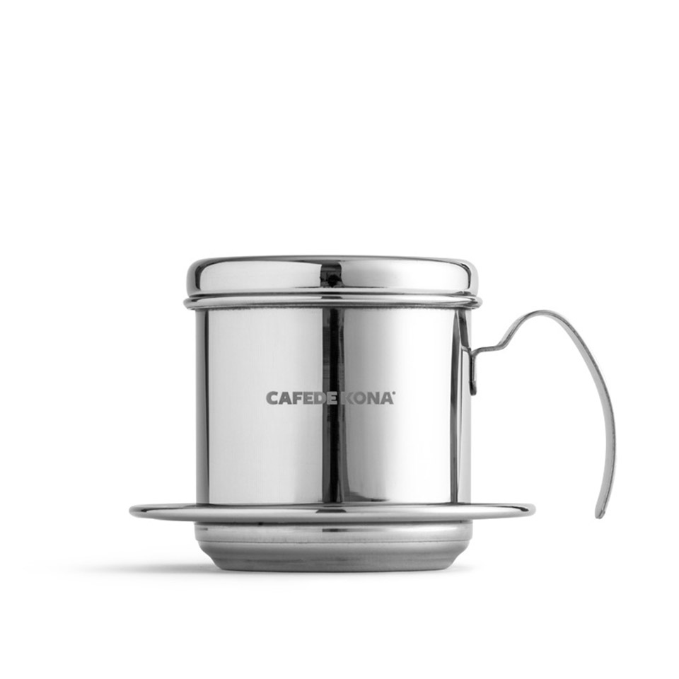 Phin cà phê cao cấp Cafede Kona là lựa chọn lý tưởng cho những tín đồ yêu thích hương vị cà phê đậm đà. Với chất liệu thép không gỉ dày dạn, phin mang đến sự bền bỉ và sang trọng, đồng thời các chi tiết cải tiến giúp tối ưu hóa quá trình pha chế, đem lại ly cà phê hoàn hảo.