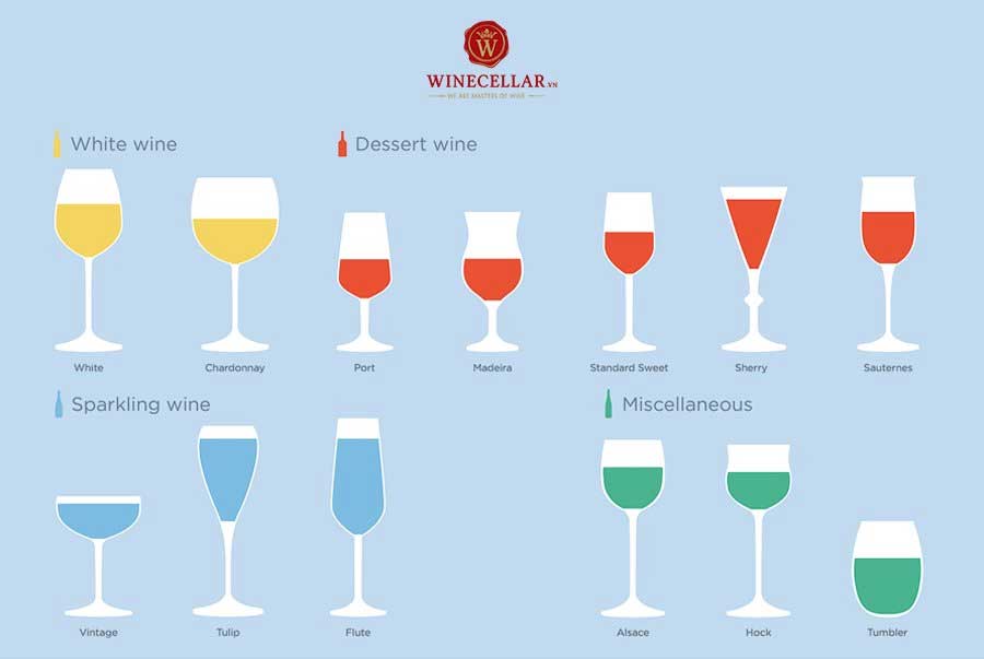 Khi thưởng thức rượu vang, việc chọn đúng loại ly rất quan trọng để trải nghiệm hương vị được trọn vẹn. Đầu tiên, ly vang trắng thường có kiểu dáng nhỏ gọn, phần bầu thuôn đều và miệng ly hẹp hơn, giúp giữ được độ tươi mát và hương trái cây của rượu.