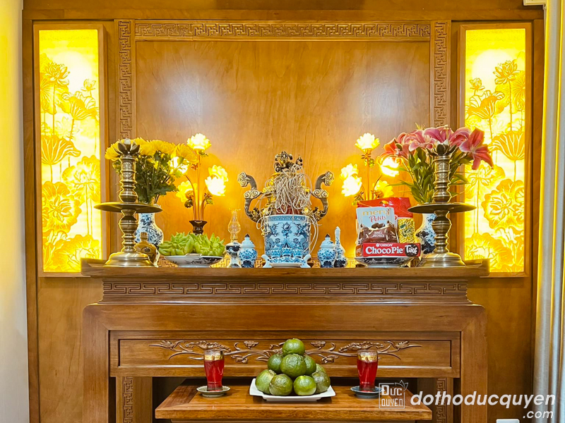 Để hoàn thiện bàn thờ, có thể bổ sung thêm đỉnh hạc, nậm rượu hay ống hương, giúp mang lại sự phong phú cho không gian thờ cúng. Mỗi vật phẩm trên bàn thờ không chỉ mang giá trị vật chất mà còn chứa đựng ý nghĩa tinh thần sâu sắc, gắn kết con cháu với tổ tiên qua những nghi lễ truyền thống.