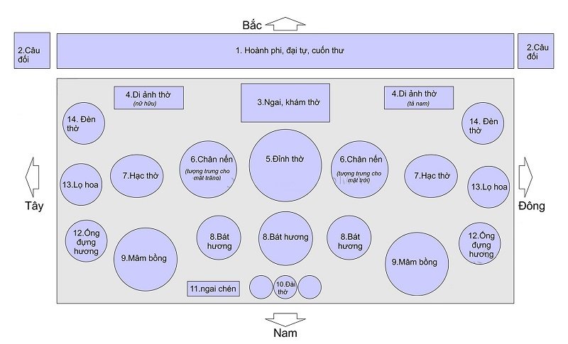 Một điều nữa rất quan trọng là hướng của bàn thờ. Hướng bàn thờ nên nhất quán với hướng của ngôi nhà, tránh việc đặt ngược lại. Đặc biệt, tránh việc đặt bài vị tổ tiên sát tường, điều này có thể bị coi là thiếu tôn trọng.