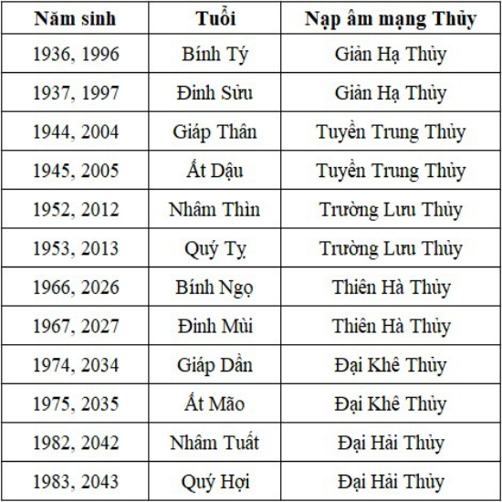 Các Mệnh Thủy Trong Ngũ Hành