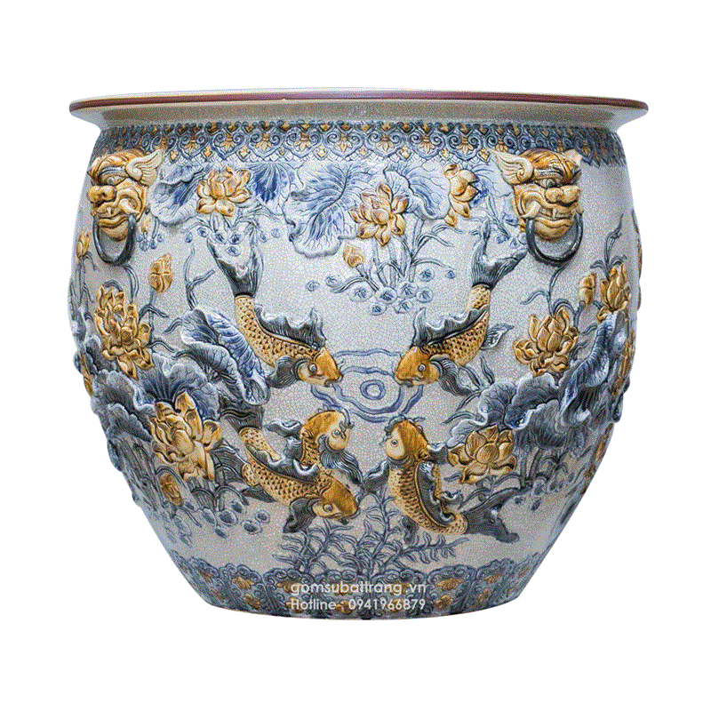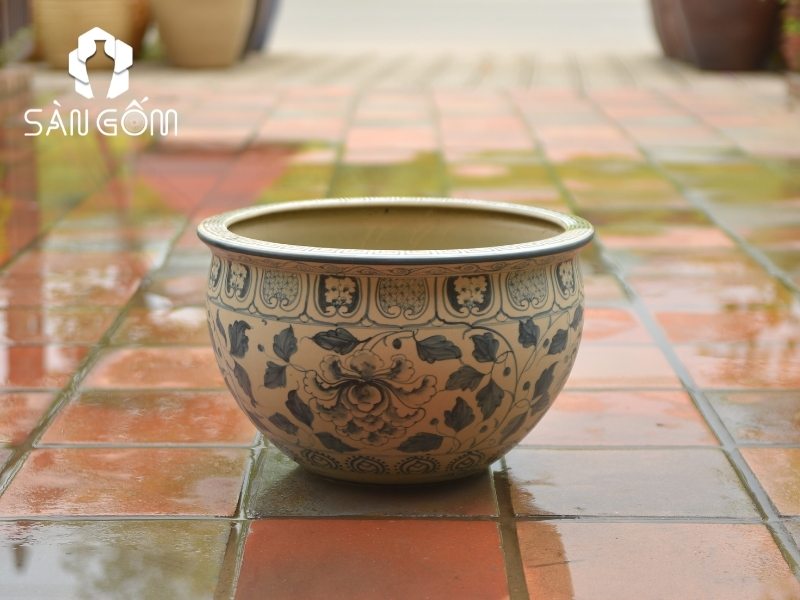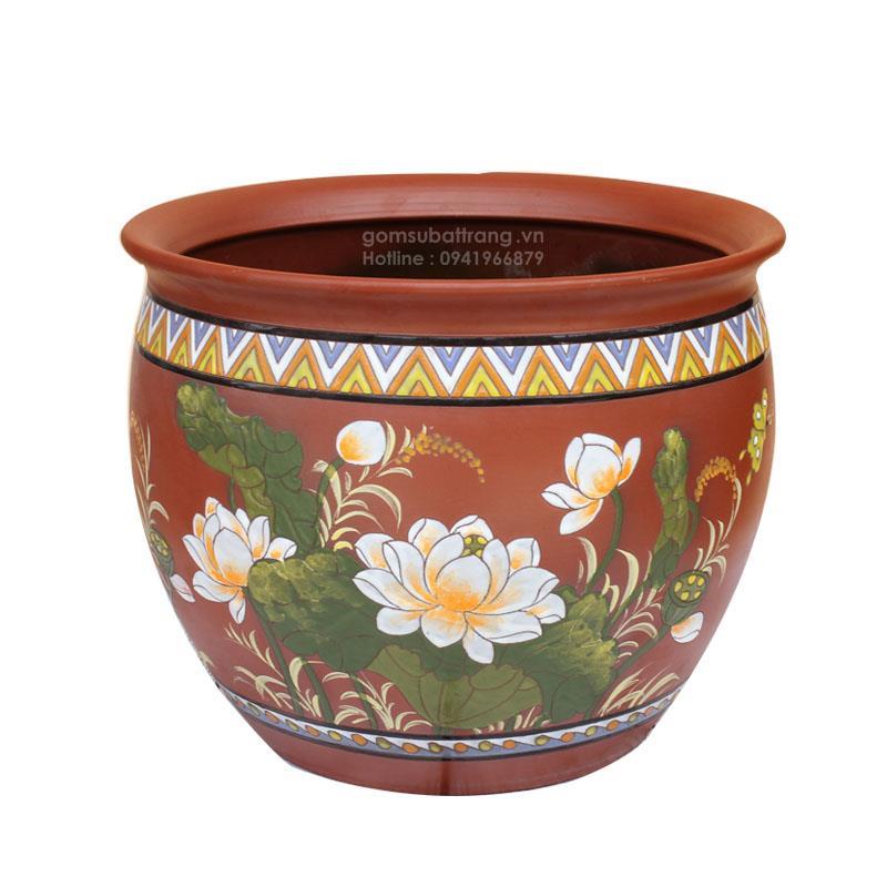 Chum sành trồng cây giá rẻ hiện đang là lựa chọn rất được ưa chuộng cho những ai thích làm vườn và trang trí không gian sống. Với kích thước 50×50 cm, miệng lượn và những họa tiết hoa sen cá chép tinh xảo, mẫu chum này không chỉ bắt mắt mà còn rất phù hợp để thả cá hay trồng các loại cây xanh.