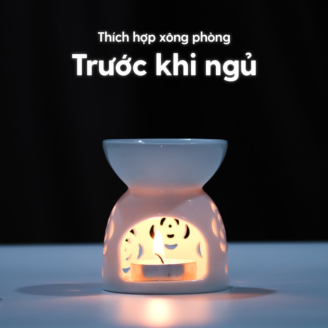 Để sử dụng, bạn chỉ cần đặt nến Tealight vào khoang đốt nến và châm lửa, sau đó đổ nước nóng vào cốc nước đựng của đèn. Đèn xông tinh dầu không chỉ giúp khuếch tán hương thơm mà còn mang lại nhiều lợi ích cho sức khỏe, như giảm căng thẳng và xua đuổi muỗi, côn trùng.