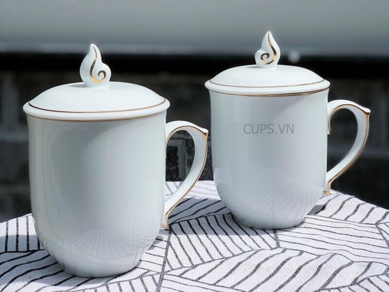 Cốc sứ nắp đậy trang nhã thanh lịch