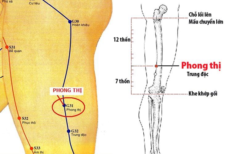 Huyệt Phong Thị, hay còn gọi là Thùy Phủ, là một trong những huyệt vị quan trọng trong hệ thống huyệt đạo của kinh Túc Thiếu Dương. Huyệt này được xác định nằm ở mặt ngoài đùi, tại phần rãnh giữa hai gân của đùi trước và đùi sau. Để tìm đúng vị trí huyệt, người bệnh có thể xuôi cánh tay thẳng xuống, ép ngón tay vào bờ sau cơ căng cân đùi. Điều này giúp xác định huyệt một cách chính xác.