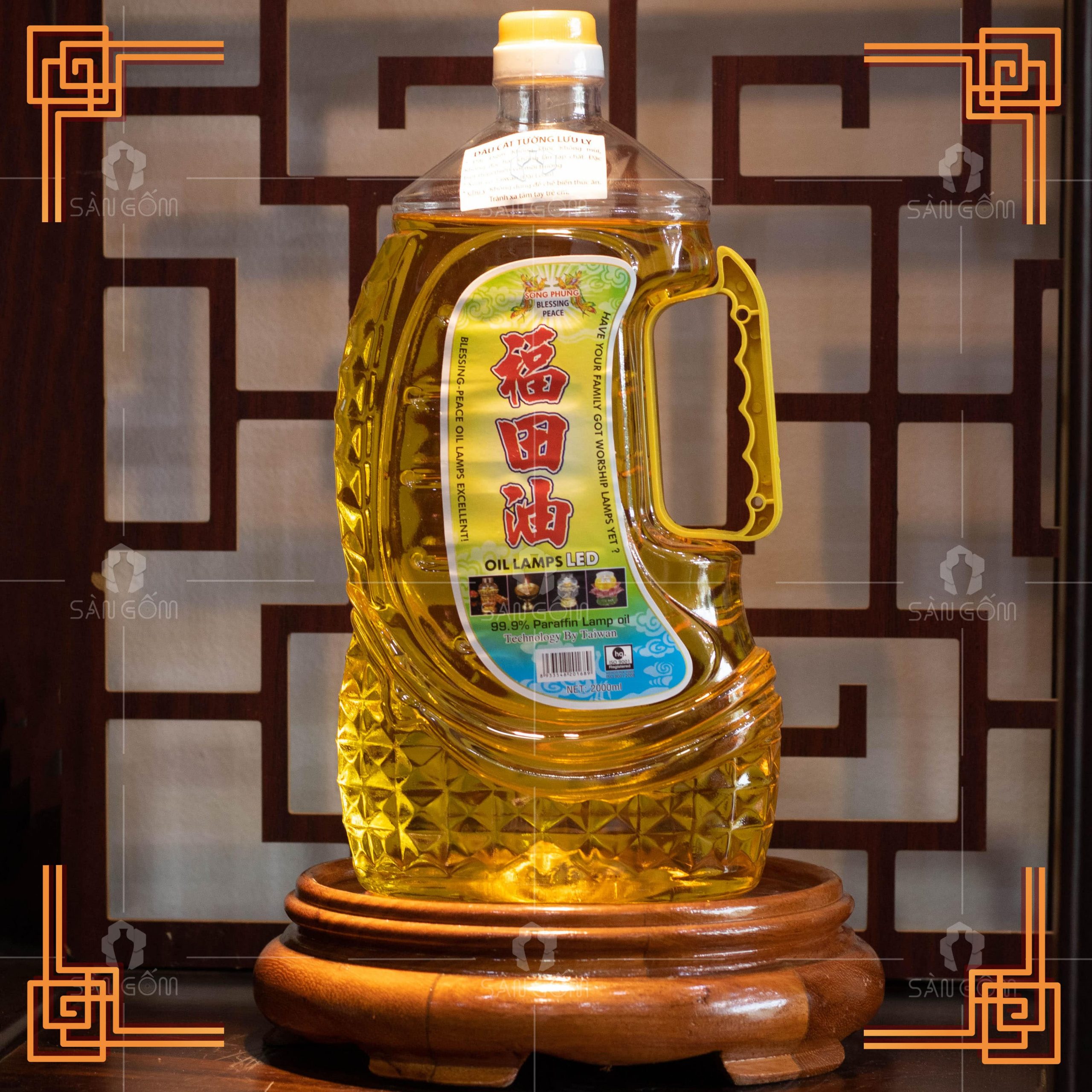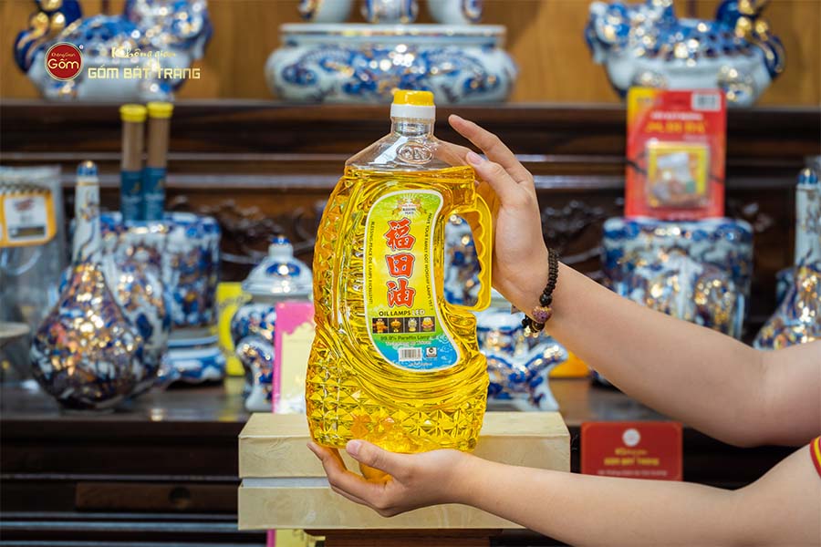 Dầu lưu ly Cát Tường có đặc điểm nổi bật là không khói, không mùi, rất thích hợp để thắp đèn thờ cúng mà không lo ảnh hưởng đến không gian. Chai dầu có thể chứa 2 lít với giá khoảng 90.000₫, là lựa chọn tuyệt vời cho những ai thường xuyên sử dụng.