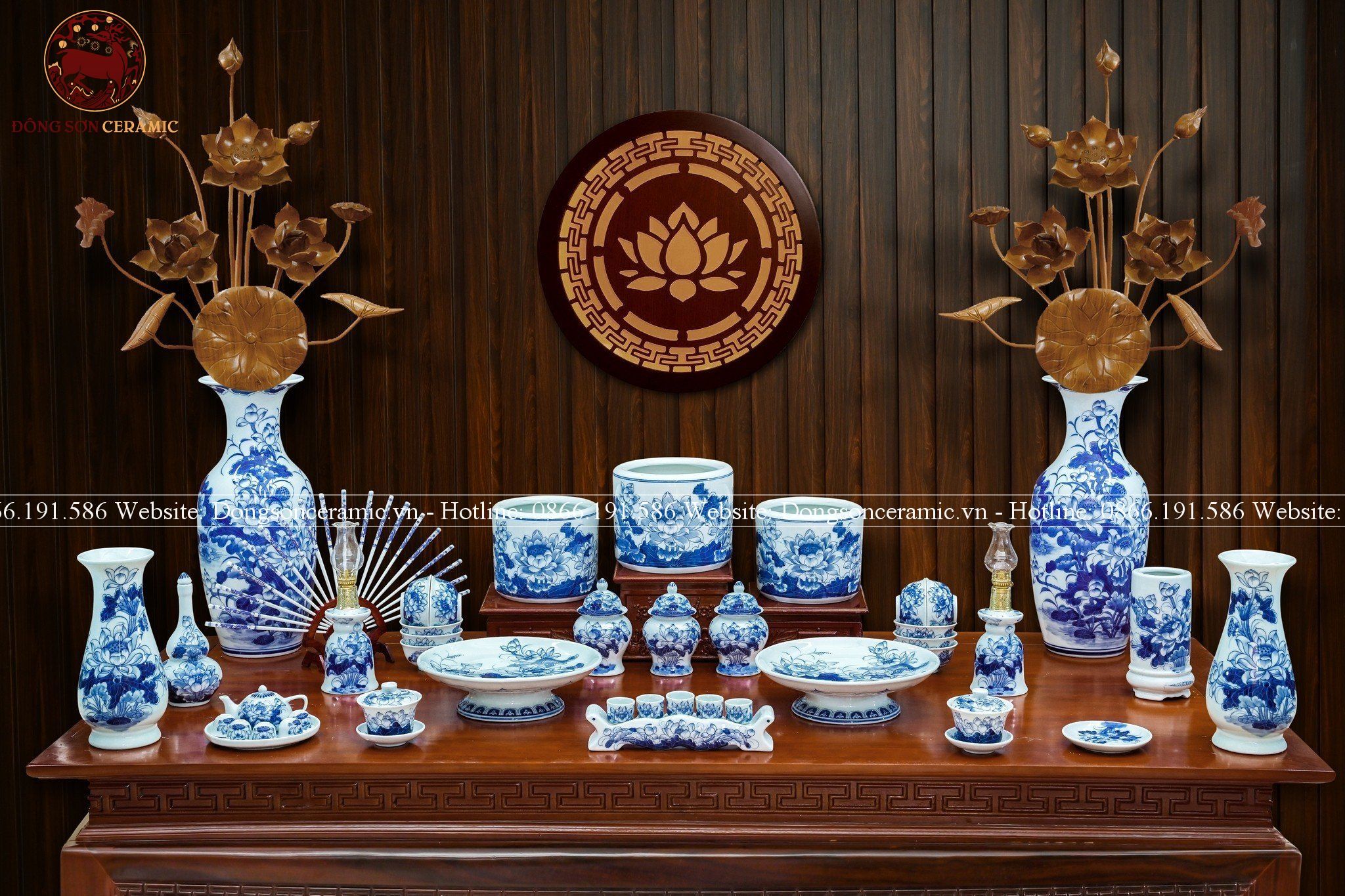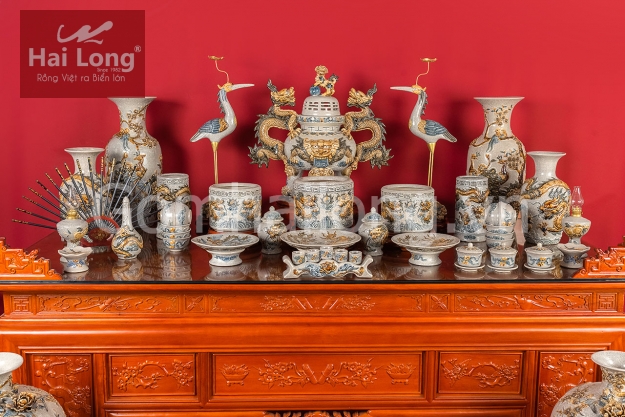 Bộ đồ thờ cúng còn bao gồm các vật phẩm như bát hương, đèn dầu, mâm bồng, được sản xuất từ những nghệ nhân làng Đại Bái với sự tỉ mỉ và nghệ thuật cao. Những chi tiết nhỏ này không chỉ làm đẹp thêm cho không gian thờ cúng mà còn khẳng định tôn kính với các vị thần linh, cầu mong cho gia đình luôn được bình an, thịnh vượng.