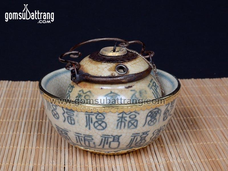 Đặc biệt, điếu bát bọc đồng vừa giữ được vẻ đẹp truyền thống, vừa tạo cảm giác sang trọng, quý phái. Hoa văn vẽ nhị cảnh trên bề mặt men lam cổ càng làm tăng giá trị thẩm mỹ cho sản phẩm. Với điếu bát men rạn cổ, bạn không chỉ thưởng thức hương vị thuốc mà còn cảm nhận được sự tinh tế của nghệ thuật gốm Bát Tràng.