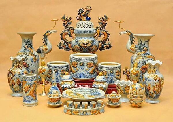 Các sản phẩm như bộ bát đũa thờ, bát sâm, và ấm chén trà cũng được làm với sự tỉ mỉ, giúp gia đình có những bữa cúng dâng lên tổ tiên thật ấm cúng. Đặc biệt, bộ đồ thờ men lam vuốt tay vẽ vàng 24k mang đến vẻ đẹp thanh tao và quý phái, làm nổi bật không gian thờ.