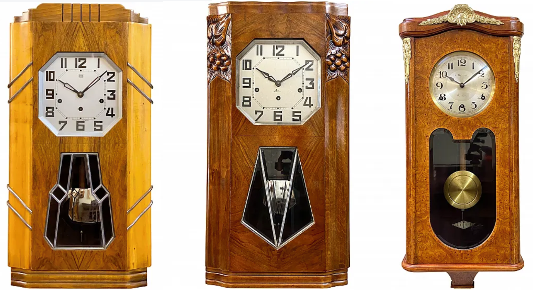 Ngoài ra, đồng hồ treo tường từ các thương hiệu danh tiếng như FFR, GIROD, hay JUNGHANS cũng nổi bật với mẫu mã đa dạng, từ chiếc đồng hồ quả lắc độc đáo đến những mẫu đồng hồ vintage với mặt số La Mã. Mỗi chiếc đồng hồ mang dấu ấn văn hóa châu Âu từ thế kỷ 18 đến 20, được chế tác thủ công tỉ mỉ.