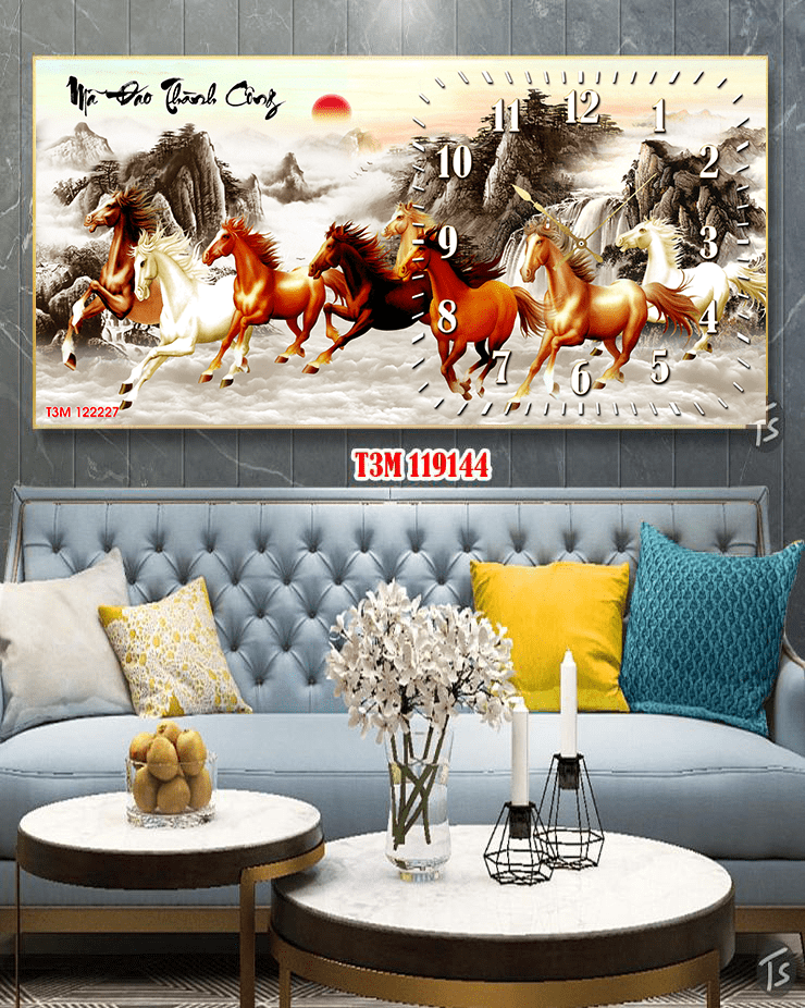 Tranh Mã Đáo Thành Công không chỉ đơn thuần là một bức tranh đẹp mà còn mang giá trị phong thủy sâu sắc. Bức tranh với tám chú ngựa phi nước đại không chỉ biểu trưng cho sự phát đạt mà còn thể hiện ý chí kiên cường, quyết tâm bứt phá. Hơn nữa, bạn nên lưu ý không treo quá nhiều đồng hồ trong không gian sống; số lượng lý tưởng là từ 2 đến 4 chiếc.
