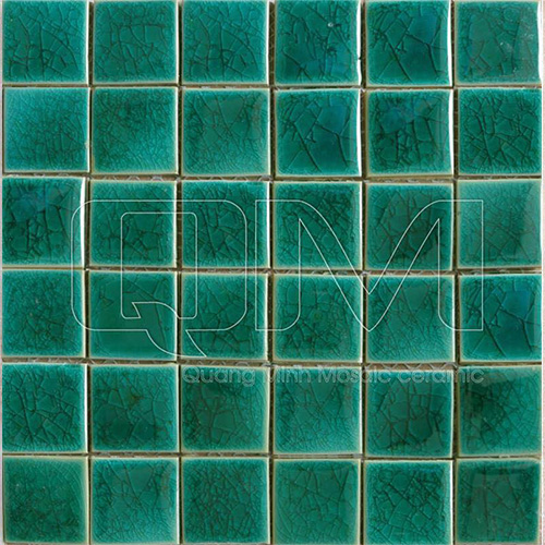 Tiếp theo, quá trình tạo hình sẽ diễn ra trên máy ép, giúp bột gạch được nén chặt thành các hình dạng mong muốn. Sau khi tạo hình, gạch sẽ được sấy khô để loại bỏ độ ẩm thừa, đồng thời chuẩn bị cho quá trình nung. Nung gạch ở nhiệt độ khoảng 1.200 độ C giúp gạch có độ bền và độ cứng cao, đồng thời tạo ra những họa tiết độc đáo trên bề mặt gạch mosaic với những ô vuông nhỏ kết hợp lại.