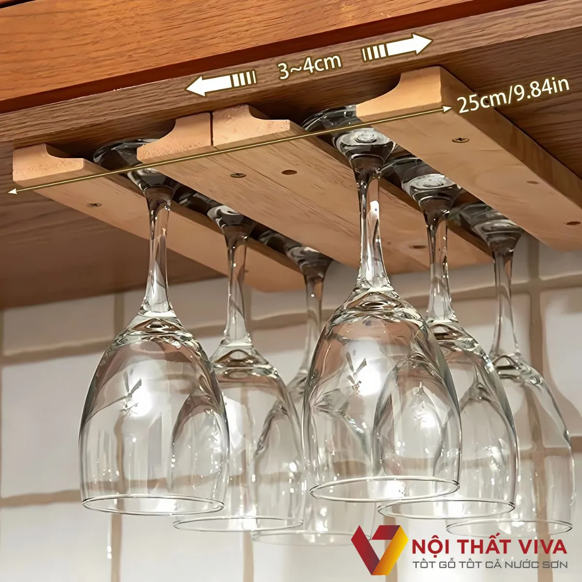 Chất liệu gỗ mang lại vẻ đẹp tự nhiên và ấm áp, đồng thời cũng rất bền bỉ và dễ dàng phối hợp với các loại nội thất khác. Những mẫu giá treo ly rượu vang đa dạng với khả năng treo từ 3 đến 12 ly, cho phép bạn thoải mái hơn trong việc sắp xếp và trang trí. Sản phẩm hoàn hảo cho các dịp quà tặng như tân gia, sinh nhật hay mừng cưới.
