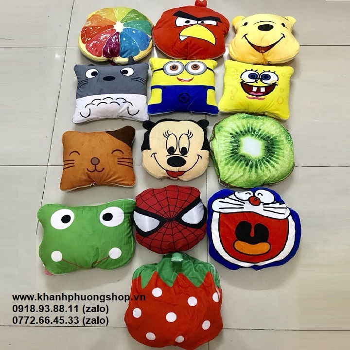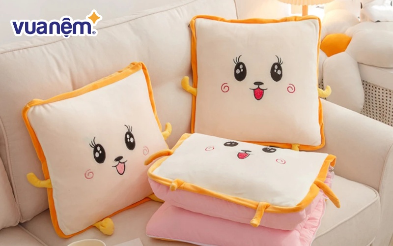 Họa tiết của gối mền 2 trong 1 rất đáng yêu với các nhân vật quen thuộc như Doremon, cáo đỏ, hay gấu Pooh vàng. Những hình ảnh này không chỉ đẹp mắt mà còn tạo nên không gian sinh động cho phòng ngủ hoặc không gian sống của bạn. Sản phẩm cũng rất tiện lợi khi có thể sử dụng như một chiếc gối hay chăn, dễ dàng gấp gọn mang theo bên mình.