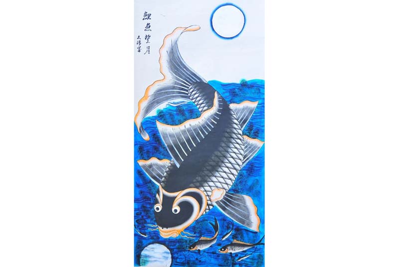 Ngoài ra, cá chép còn ghi dấu ấn trong những không gian thờ cúng, thể hiện lòng biết ơn và khát vọng vươn lên. Bất cứ nơi nào có bức tranh cá chép trông trăng, không gian ấy trở nên tươi sáng hơn, mang đến cho người xem cảm giác an lành và gần gũi.