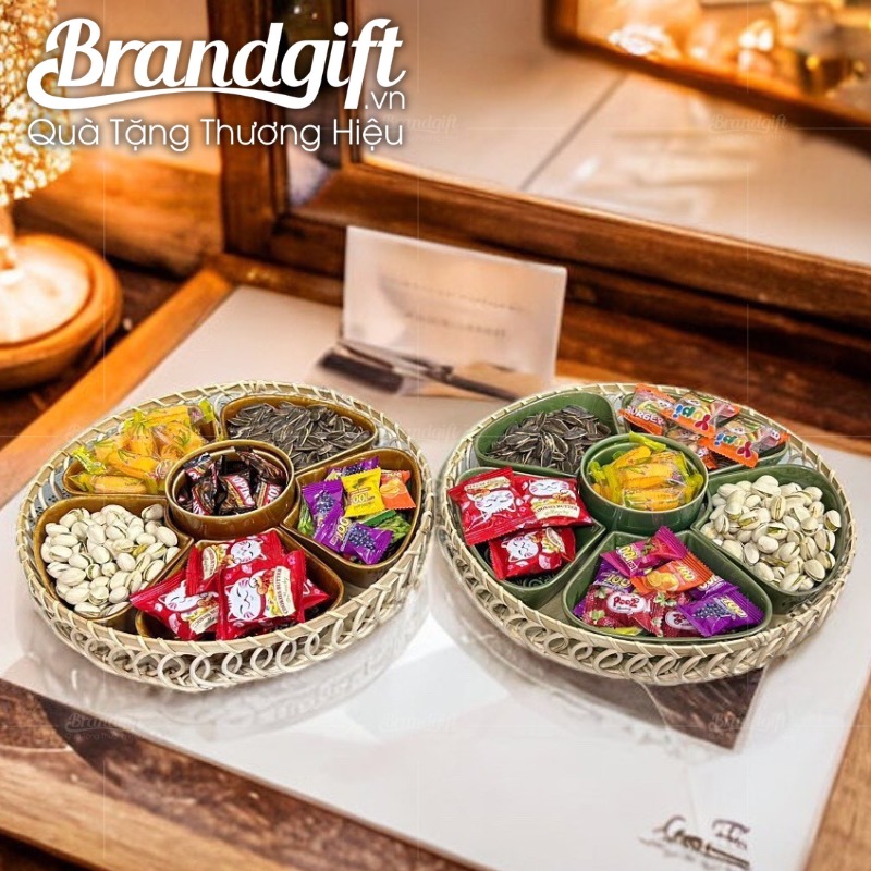 Mỗi khay mứt đều được in logo tinh tế, giúp bạn khẳng định thương hiệu của mình một cách chuyên nghiệp. Đặc biệt, bộ khay mứt hoa 5 cánh với giá từ 607,000 – 713,000 VNĐ/bộ mang đến sự lựa chọn phong phú cho những ai đang tìm kiếm món quà ý nghĩa.