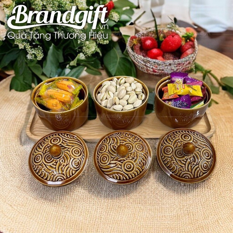 Hộp đựng mứt Tết in logo là món quà tuyệt vời để gửi gắm tình cảm và sự trân trọng đến đối tác, bạn bè trong dịp năm mới. Tại Brandgift, chúng tôi chuyên cung cấp các mẫu khay mứt sứ Bát Tràng cao cấp, với thiết kế sang trọng và chất liệu bền đẹp, giá cả hợp lý từ 533,000đ đến 547,000đ.