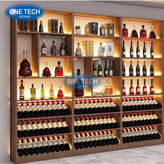 Kệ trưng bày rượu vang nhà hàng không chỉ đơn thuần là nơi lưu trữ rượu mà còn là yếu tố làm đẹp cho không gian. One Tech đã tổng hợp 21 mẫu kệ trưng bày rượu vang cao cấp, được thiết kế tinh tế từ gỗ và kim loại, vừa bền bỉ lại vừa sang trọng. Những mẫu kệ này mang đến cảm giác hiện đại và góp phần làm nổi bật chai rượu, giúp khách hàng dễ dàng nhận diện sản phẩm.