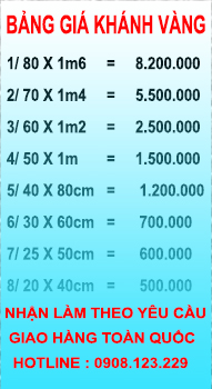 Khánh Vàng Giá Rẻ đang là lựa chọn hàng đầu cho những ai tìm kiếm món quà ý nghĩa trong các dịp đặc biệt. Với đa dạng kích thước từ 70 x 1m4 với giá chỉ 5.500.000Đ đến những mẫu nhỏ hơn như 30 x 60cm giá 800.000Đ, khách hàng có thể dễ dàng lựa chọn sản phẩm phù hợp với ngân sách của mình.