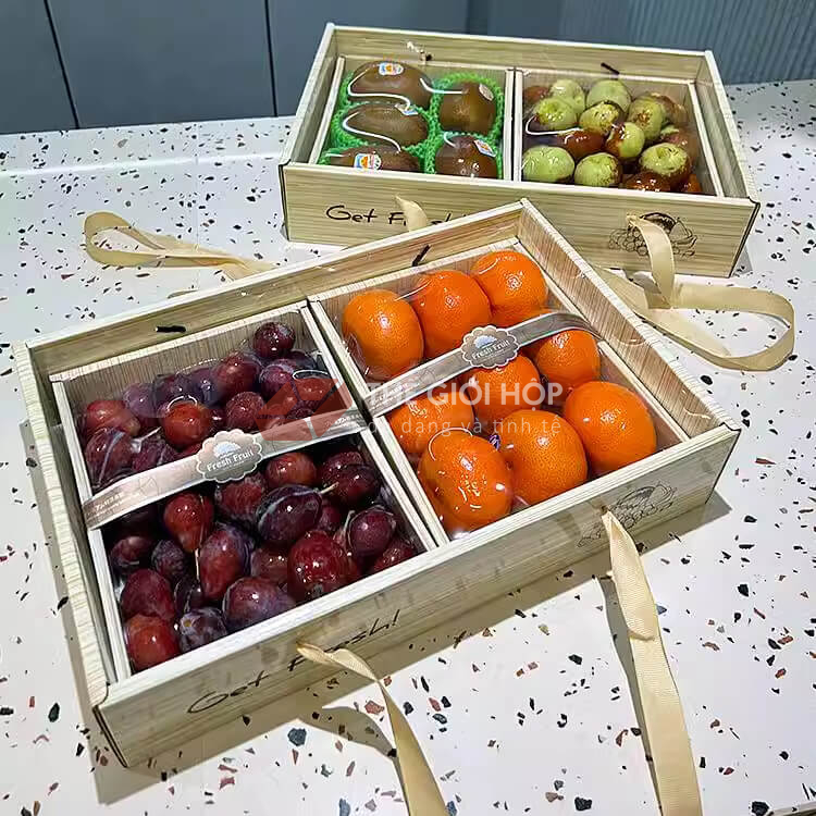 Khay gỗ đựng trái cây mộc mạc ấm áp