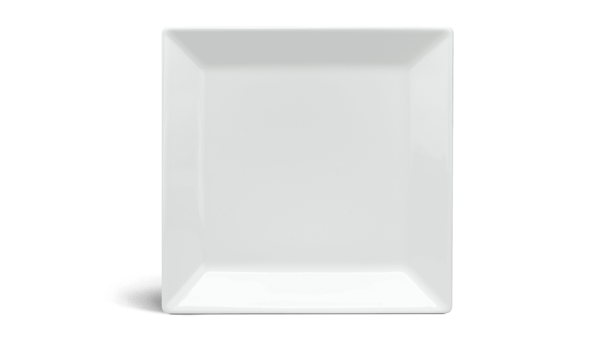 Đĩa vuông màu trắng mỏng manh đặt trên nền