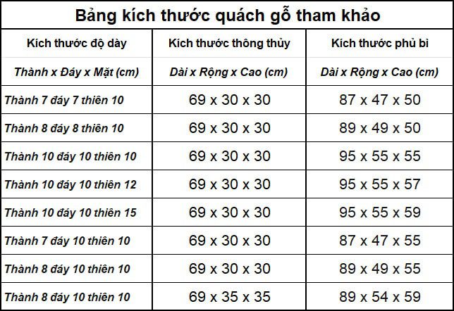 Khung quách kích thước chuẩn cho người đã khuất